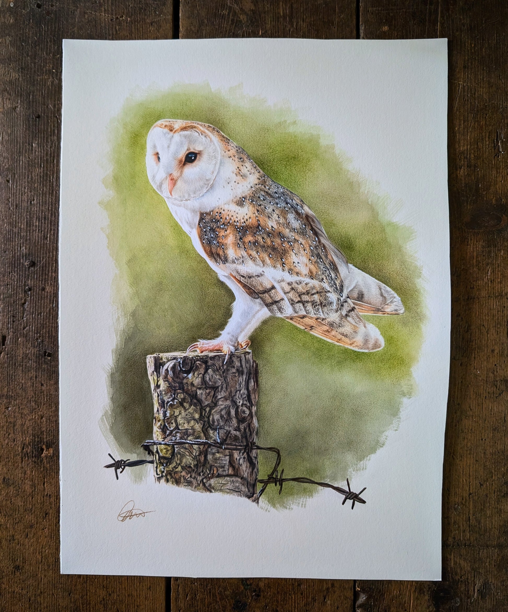 Coloured pencil and watercolour Barn Owl original on Fabriano Artistico paper.